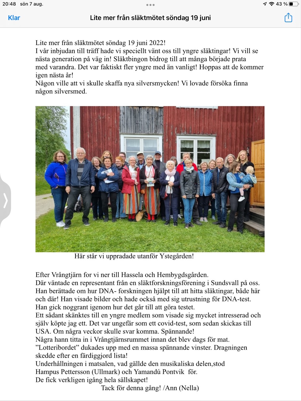 Sammanfattning från släktmötet söndagen 19 juni 2022!
